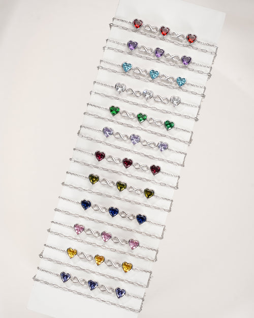 Heart & Infinity Charm Birthstone Bracelet