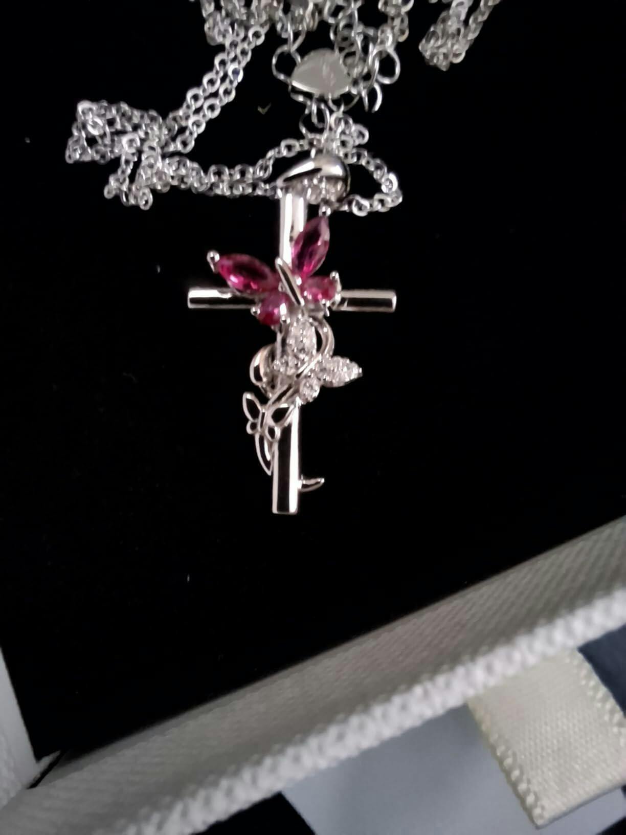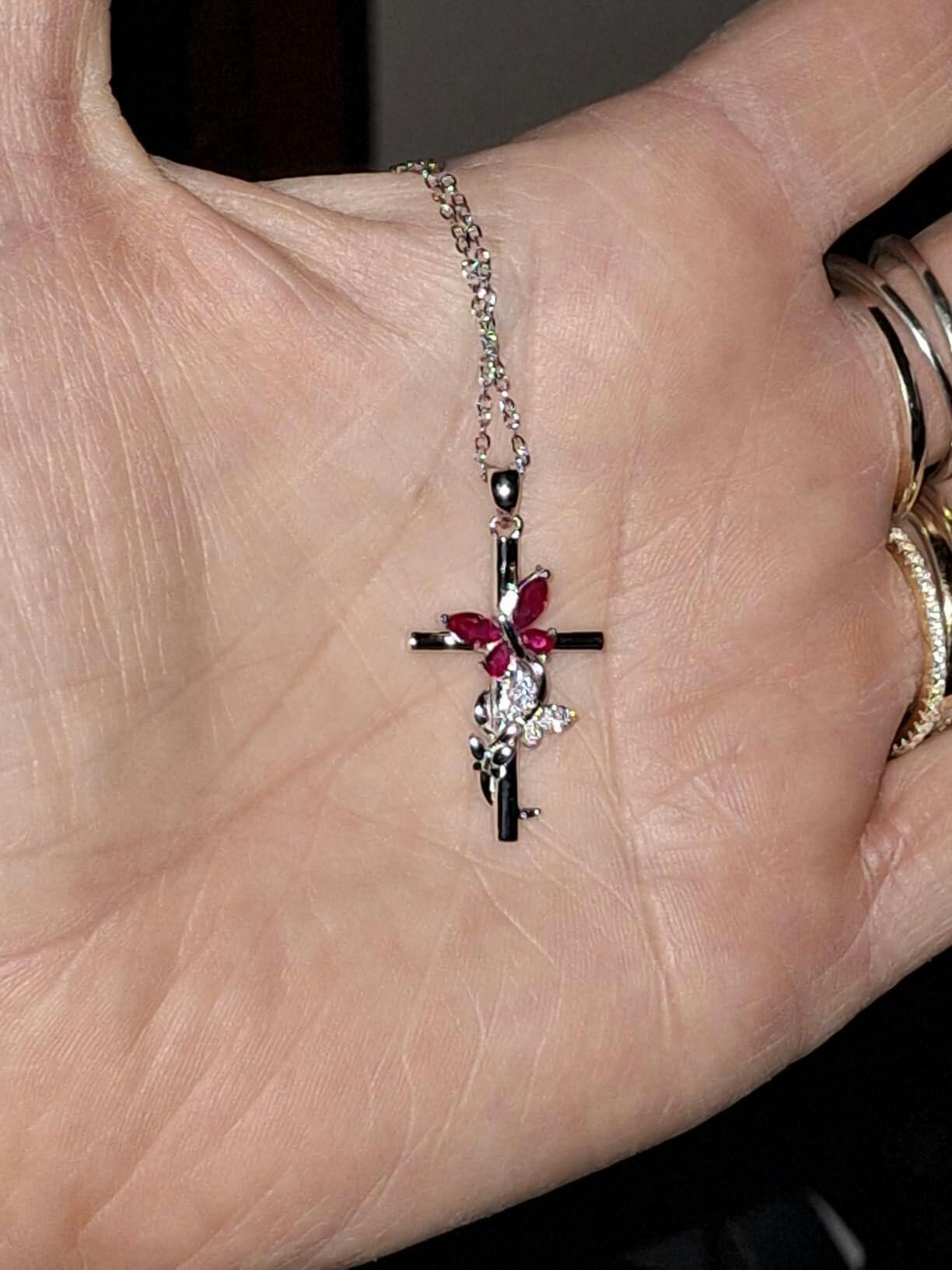 Butterfly Cross Necklace with 12 Birthstones – Faith Jewelry Gift for Women